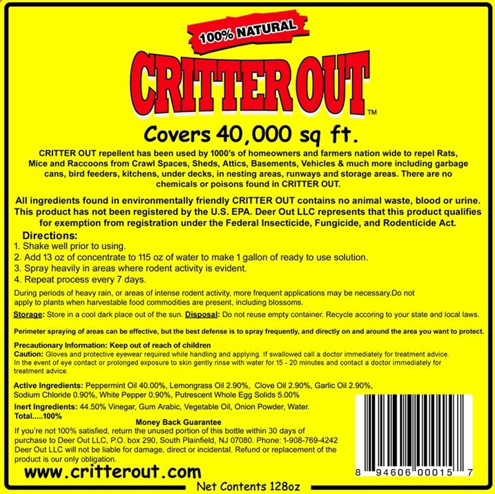 Critter Out 1 Gallon Concentrate – Rat, Mouse & Rodent Repellent