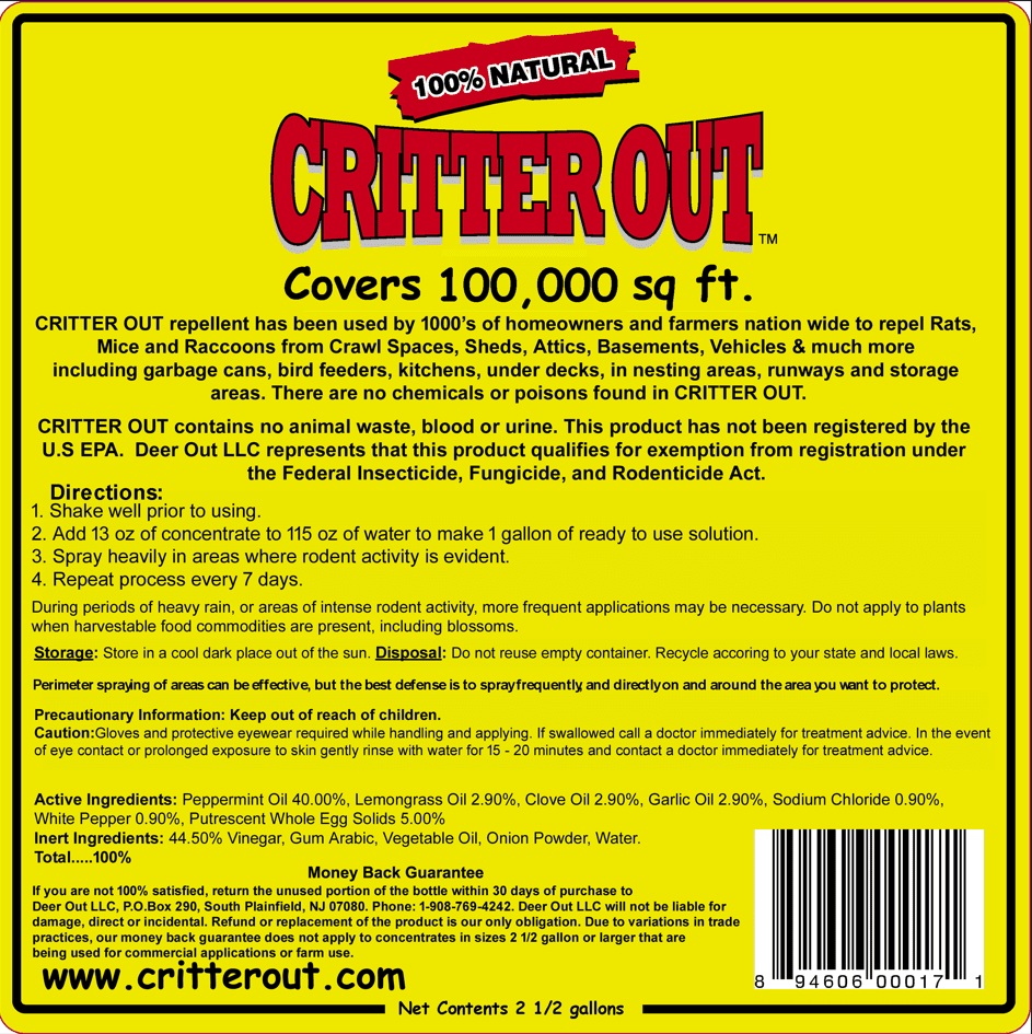 Critter Out 2.5 Gallon Concentrate – Rat, Mouse & Rodent Repellent