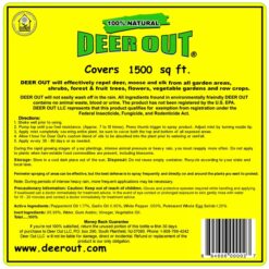 Deer Out® Deer Repellent has been member tested and recommended by the National Home & Gardening club with over 650,000 members. With no harmful chemicals or poisons, Deer Out® is environmentally safe and does not wash off in the rain or when you water your plants. Under normal weather conditions, Deer Out® can last up to 3 or 4 months or more.